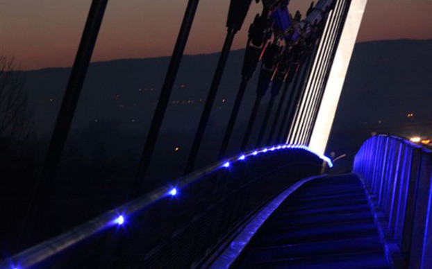 To up-light the footpaths and cycle paths on each side of the road bridge of Saint-Just-Saint-Rambert, aka «The Big Bridge over the river Loire», the 1530 Bordeaux spotlight was glued on a small rectangle stainless steel window specifically designed for this project.